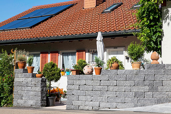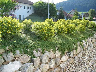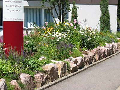Seniorenzentrum Neustadt: Natursteinmauer mit Staudenbegrünung