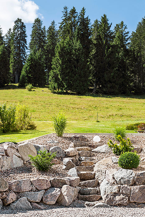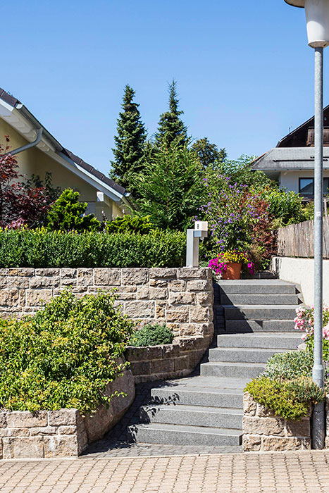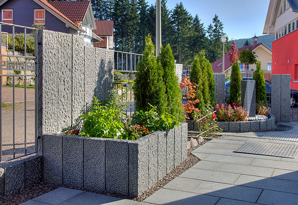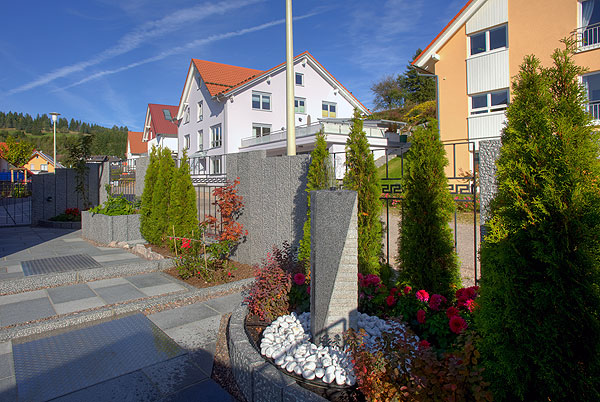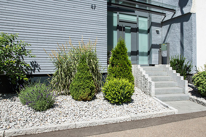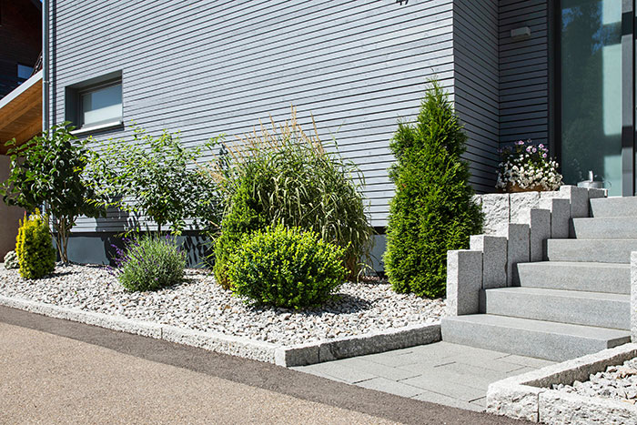 Private Aussenanlage: Granitsteinarbeiten und Pflanzungen